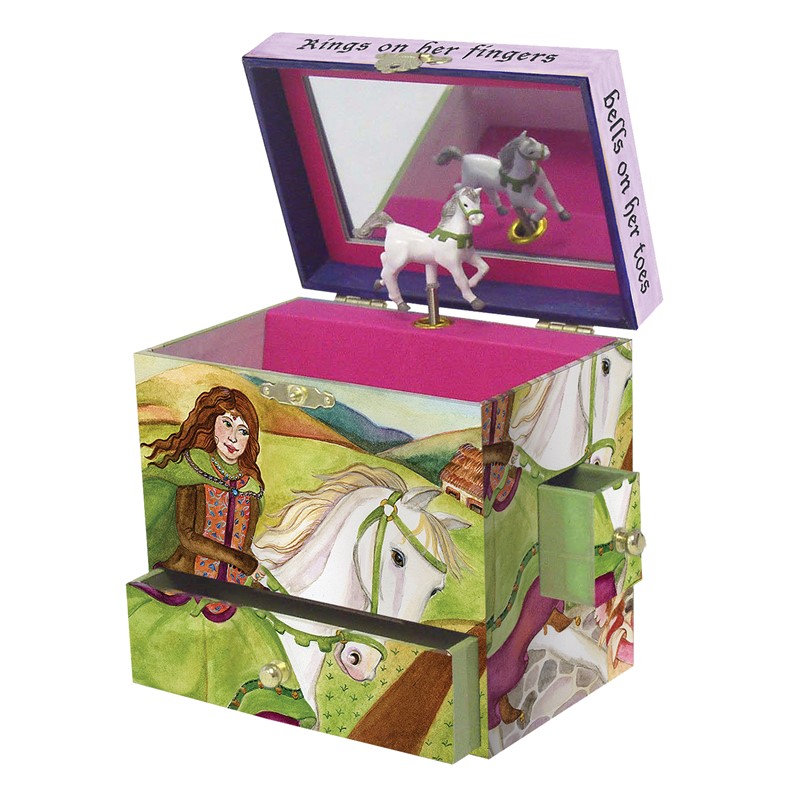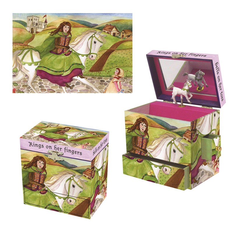 Ilustradas por Denise Marshall, con cálidos y excepcionales dibujos y diseños son un lugar seguro para guardar recuerdos y tesoros personales en sus cajones ingeniosos y “secretos”, forrados con terciopelo flocado y contienen en su interior un espejo y un personaje giratorio y musical.